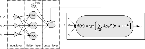 we may describe SVM as a feed-forward neural net with one hidden layer (Fig. 6). ![]() Fig. 6: Architecture of SVM classifier with linear or non-linear kernel function [6]. The main idea of support vector classification is to separate examples with a linear decision surface and maximize the margin between the different classes. This leads to the convex quadratic programming problem (the primal form was omitted for brevity, see for example [8]). The Lagrange multiplier measures the influence of the i’th learning example